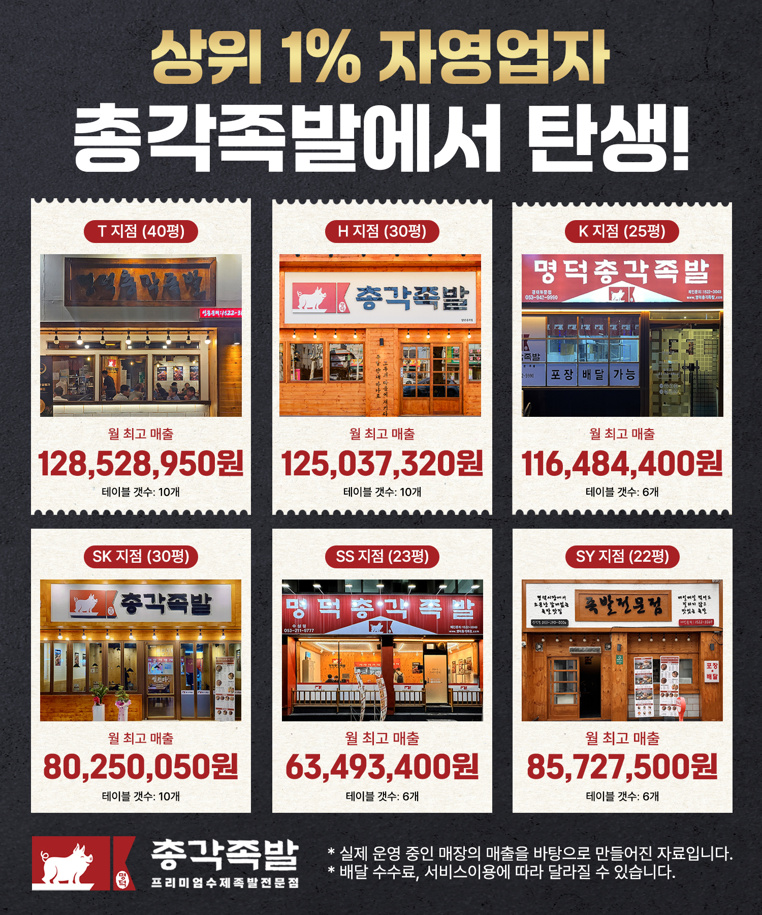 SK 지점 (30평)월 최고 매출 80,250,050원